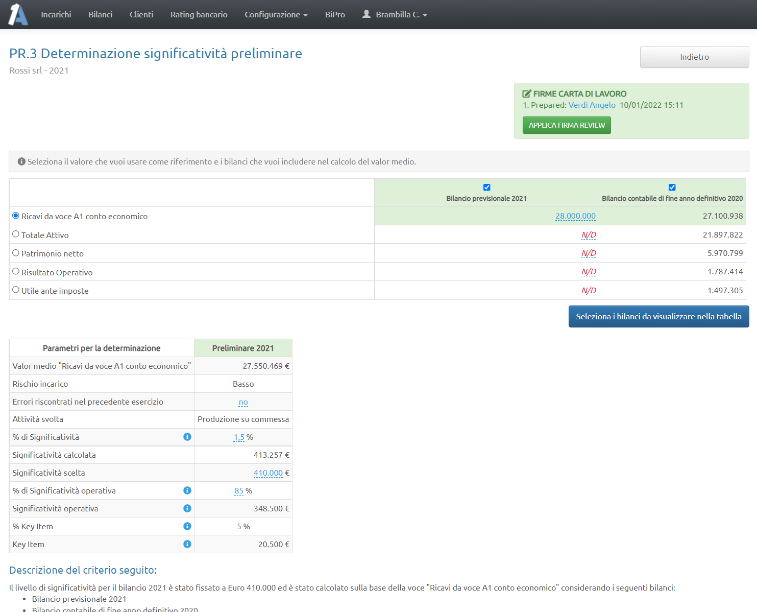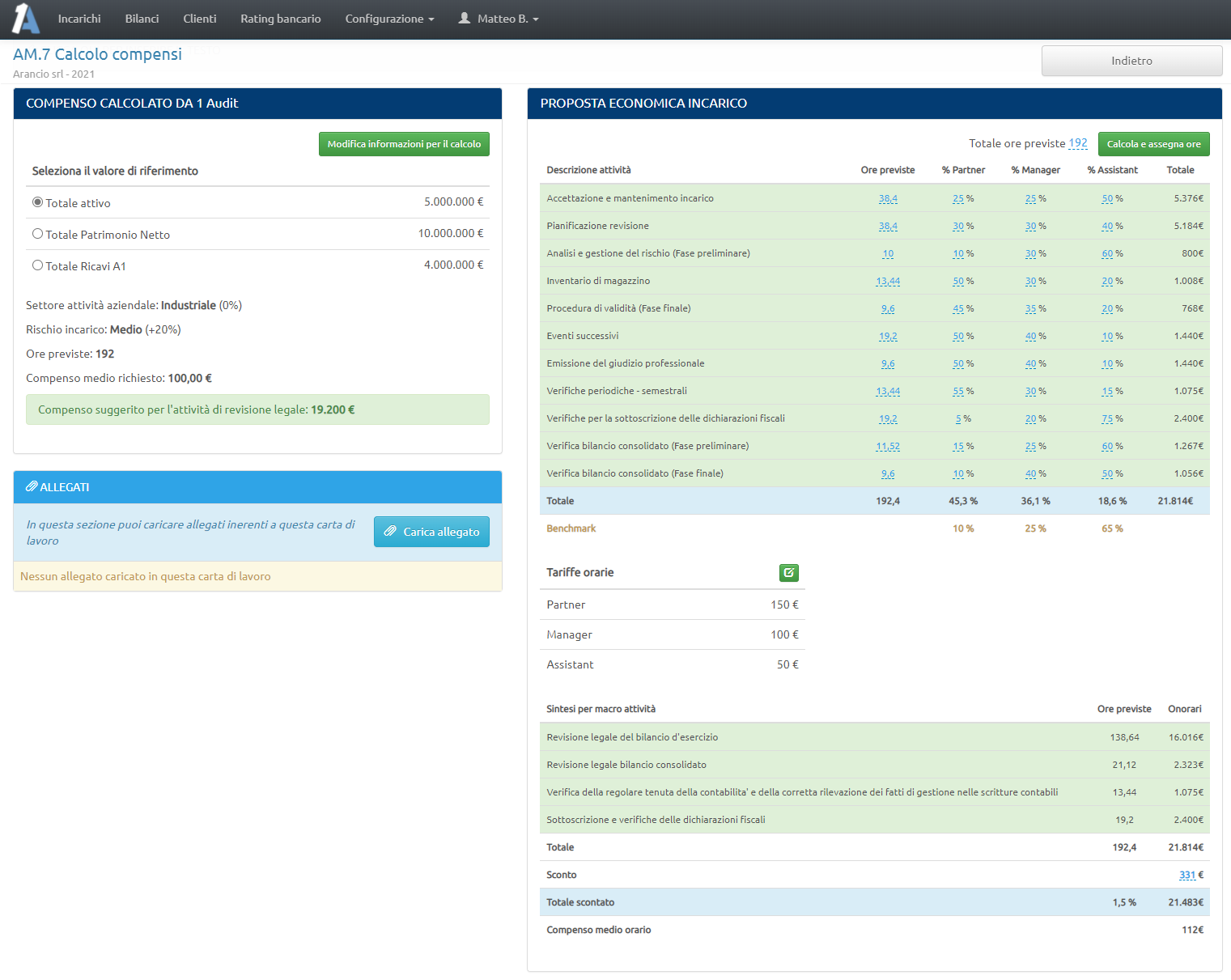 Clicca e scorri le seguenti immagini per vedere alcune delle principali funzioni di 1 Audit